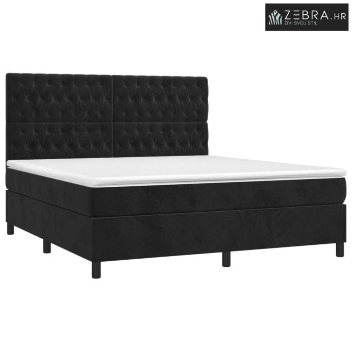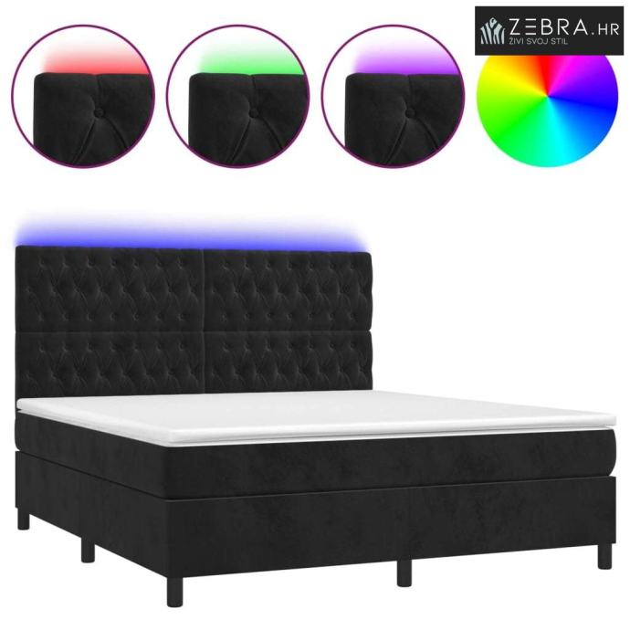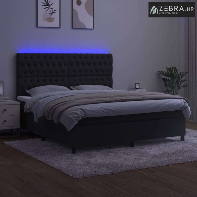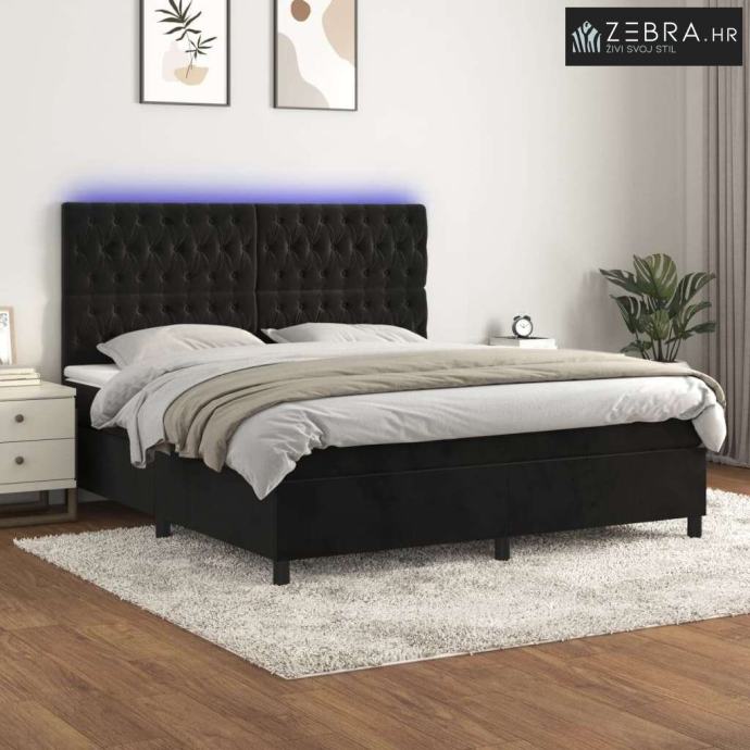 Krevet box spring s madracem LED crni 160x200 cm baršun - Crna 160 x 2