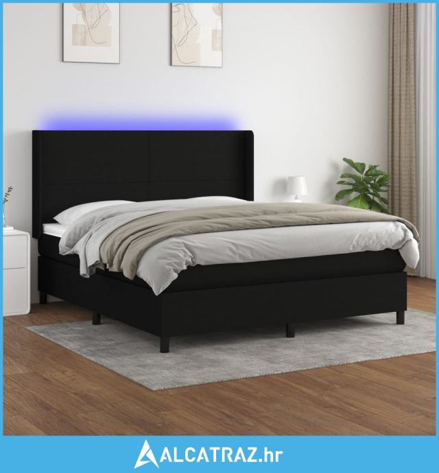 Krevet box spring s madracem LED crni 160x200 cm od tkanine - NOVO