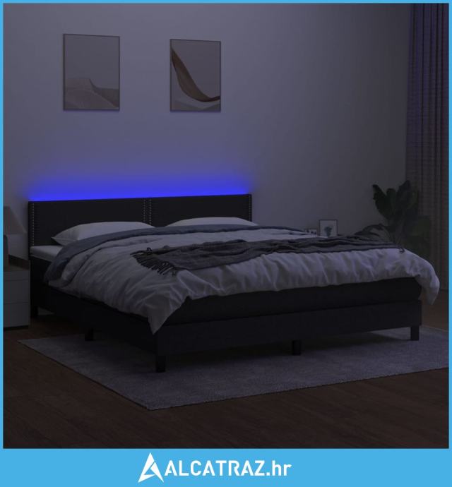 Krevet box spring s madracem LED crni 160x200 cm od tkanine - NOVO