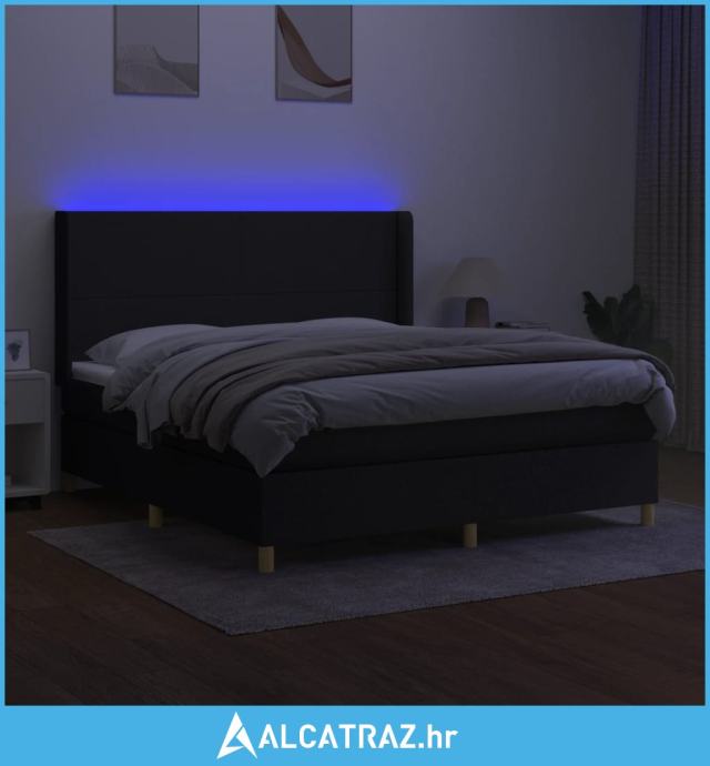 Krevet box spring s madracem LED crni 180x200 cm od tkanine - NOVO