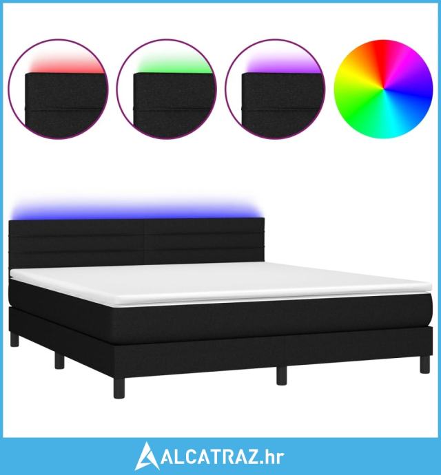 Krevet box spring s madracem LED crni 180x200 cm od tkanine - NOVO