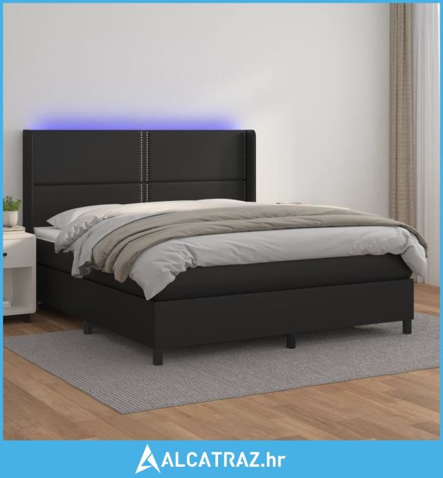 Krevet box spring s madracem LED crni 180x200cm od umjetne kože - NOVO