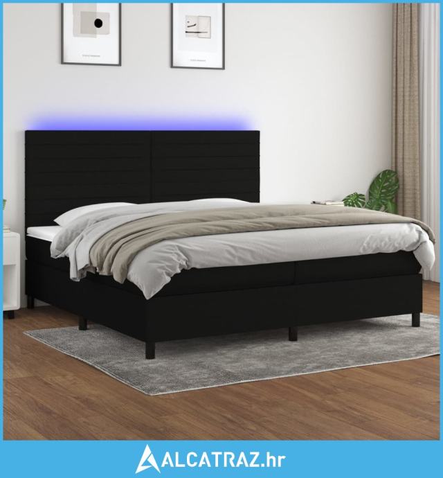 Krevet box spring s madracem LED crni 200x200 cm od tkanine - NOVO