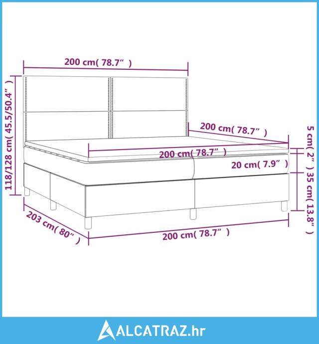 Krevet box spring s madracem LED crni 200x200 cm od tkanine - NOVO