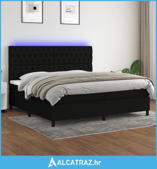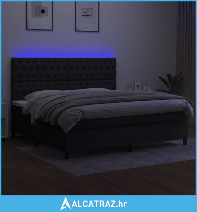 Krevet box spring s madracem LED crni 200x200 cm od tkanine - NOVO