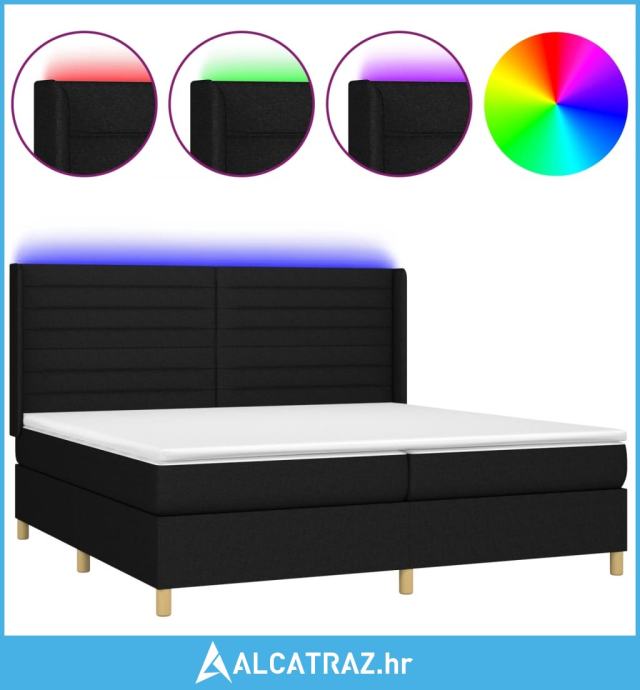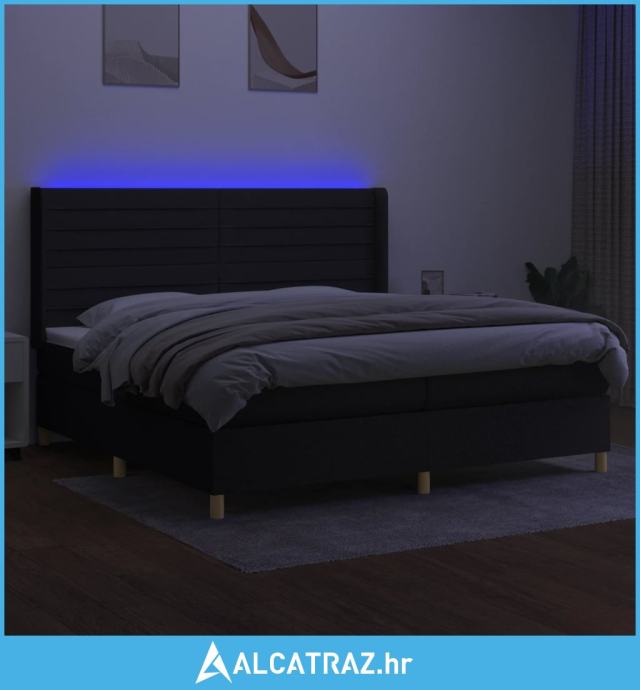 Krevet box spring s madracem LED crni 200x200 cm od tkanine - NOVO