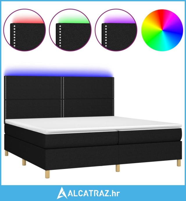 Krevet box spring s madracem LED crni 200x200 cm od tkanine - NOVO