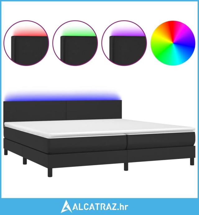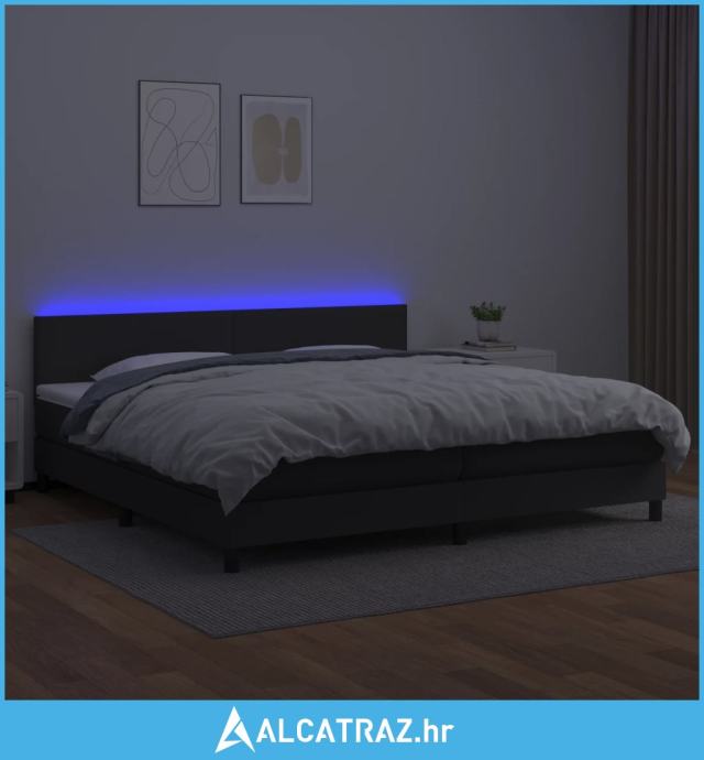 Krevet box spring s madracem LED crni 200x200cm od umjetne kože - NOVO