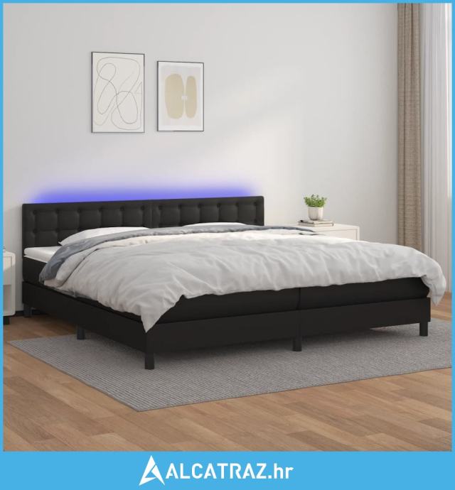 Krevet box spring s madracem LED crni 200x200cm od umjetne kože - NOVO
