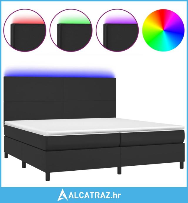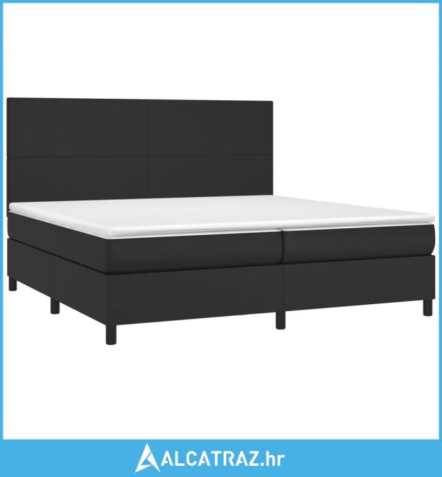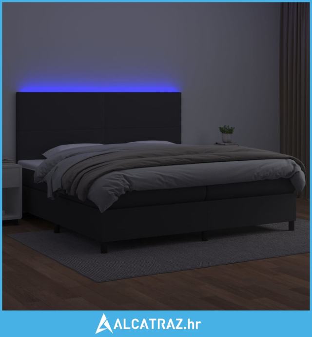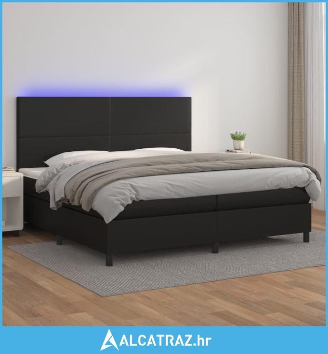 Krevet box spring s madracem LED crni 200x200cm od umjetne kože - NOVO