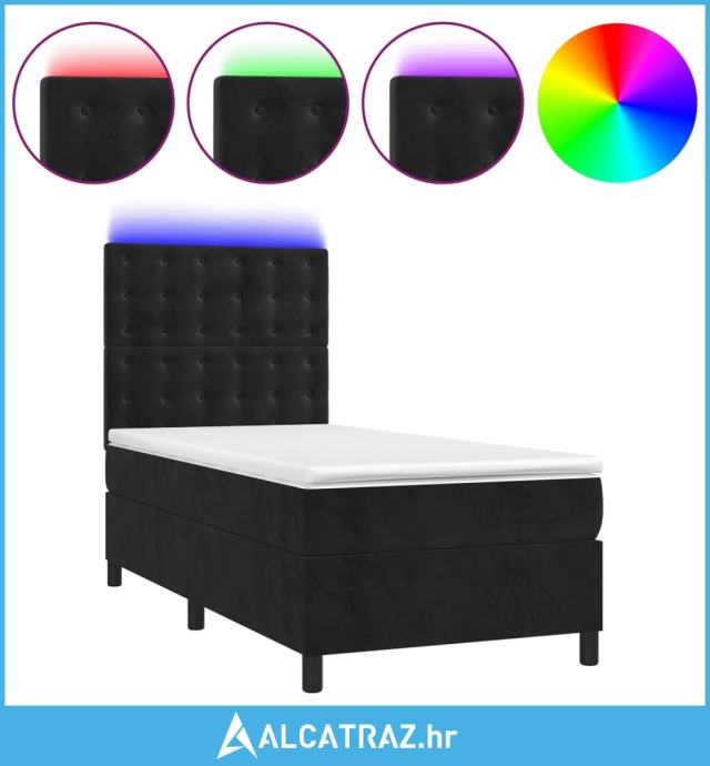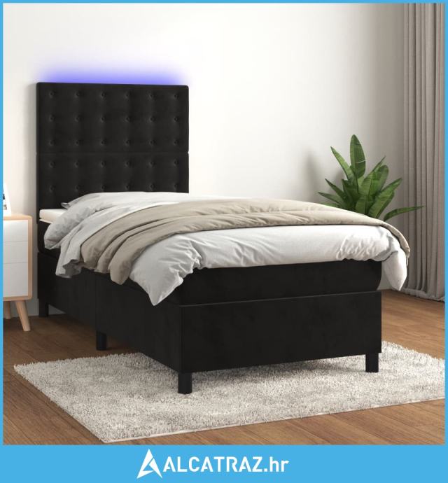 Krevet box spring s madracem LED crni 80 x 200 cm baršunasti - NOVO