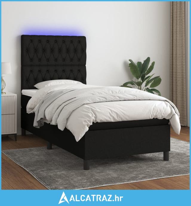 Krevet box spring s madracem LED crni 80 x 200 cm od tkanine - NOVO