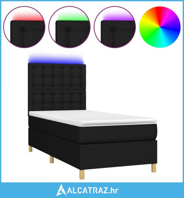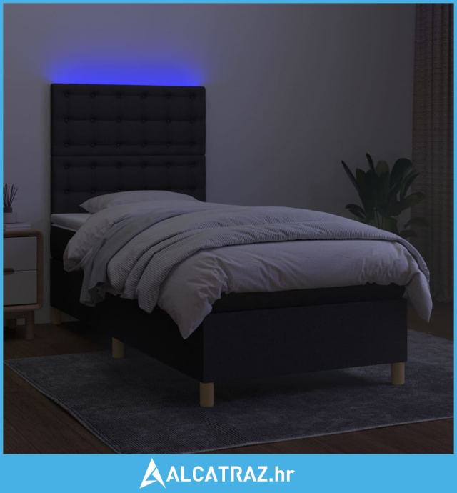 Krevet box spring s madracem LED crni 80 x 200 cm od tkanine - NOVO
