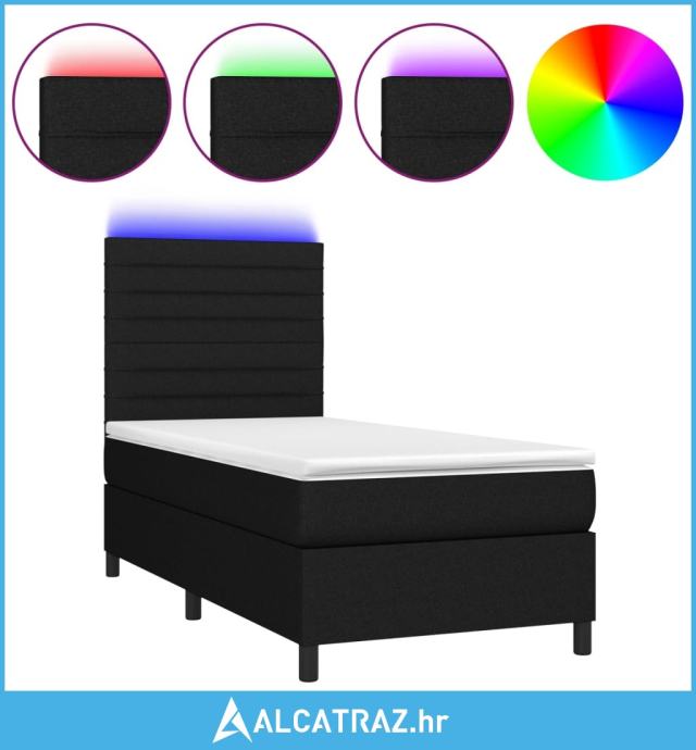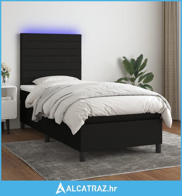 Krevet box spring s madracem LED crni 80 x 200 cm od tkanine - NOVO