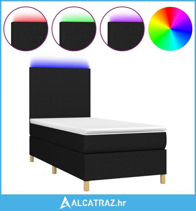 Krevet box spring s madracem LED crni 80 x 200 cm od tkanine - NOVO