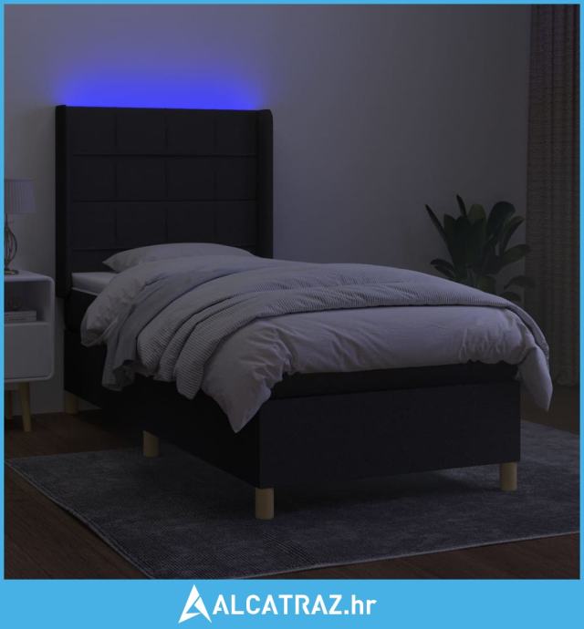 Krevet box spring s madracem LED crni 90x190 cm od tkanine - NOVO