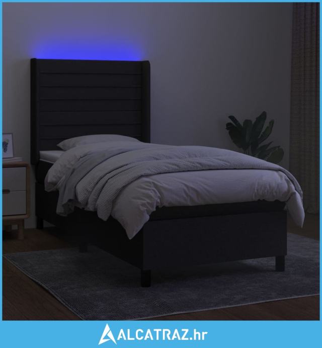 Krevet box spring s madracem LED crni 90x190 cm od tkanine - NOVO