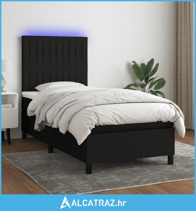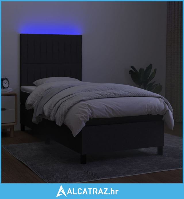 Krevet box spring s madracem LED crni 90x190 cm od tkanine - NOVO