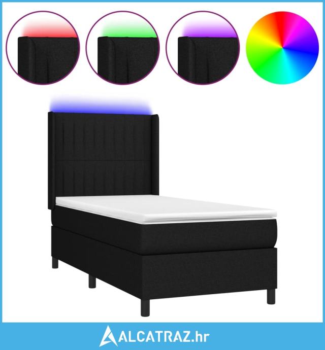 Krevet box spring s madracem LED crni 90x190 cm od tkanine - NOVO