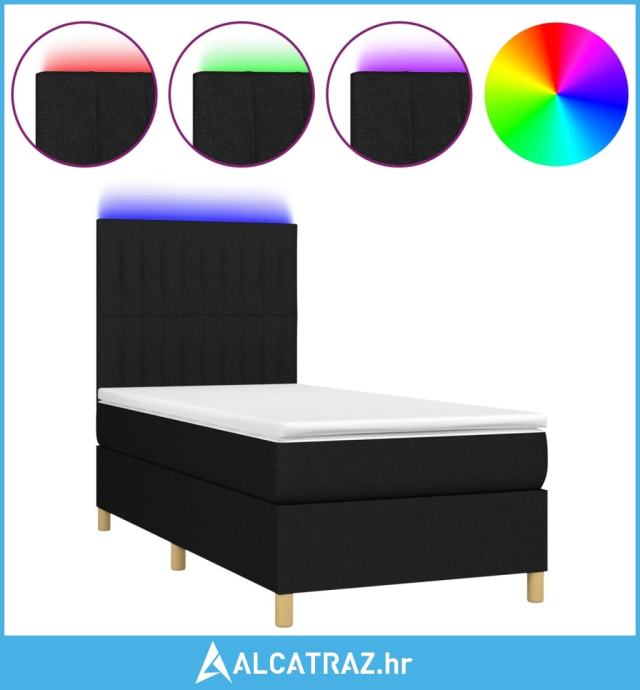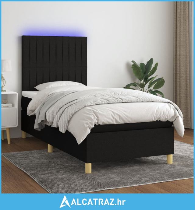 Krevet box spring s madracem LED crni 90x190 cm od tkanine - NOVO
