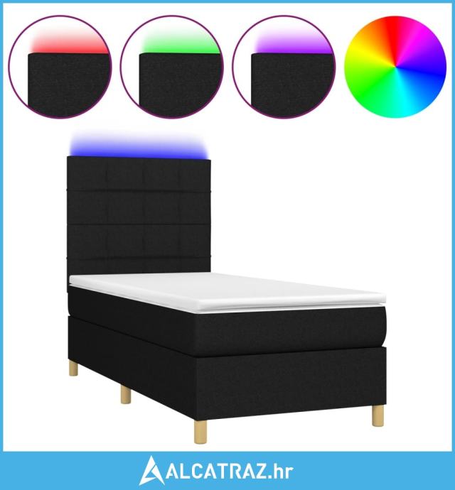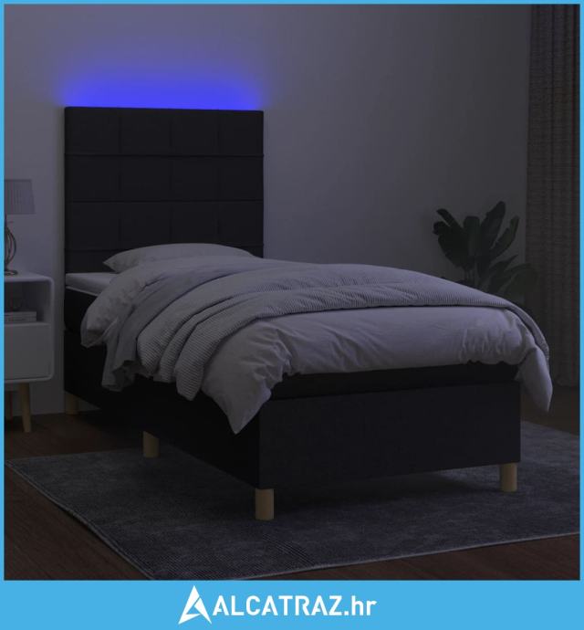 Krevet box spring s madracem LED crni 90x200 cm od tkanine - NOVO