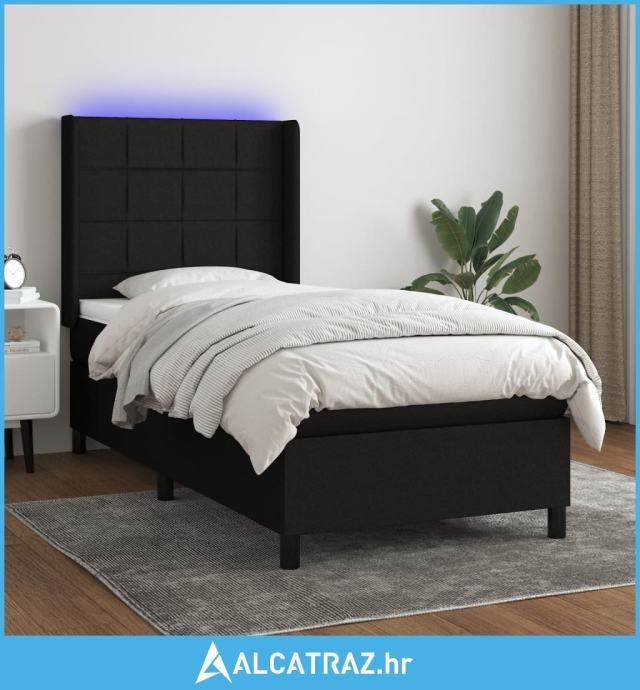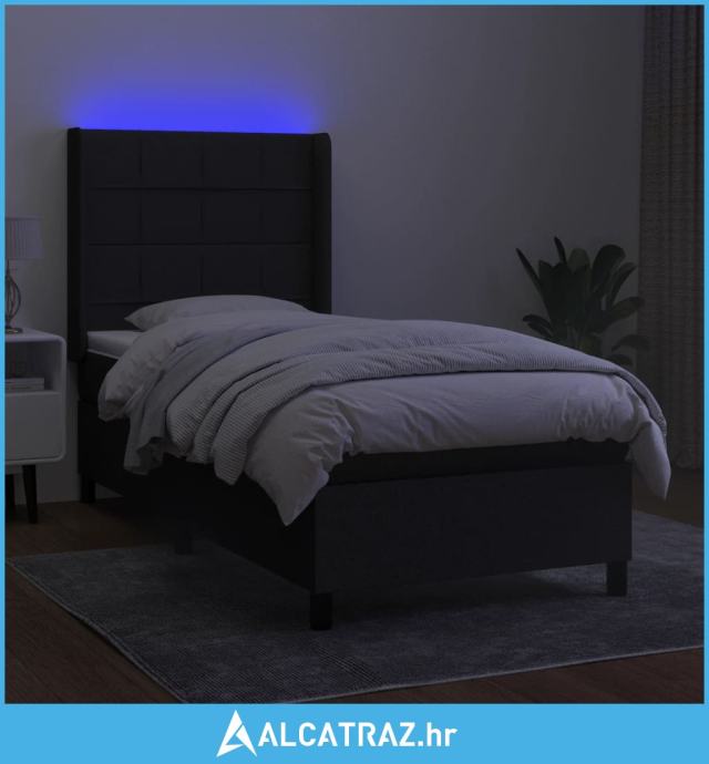 Krevet box spring s madracem LED crni 90x200 cm od tkanine - NOVO