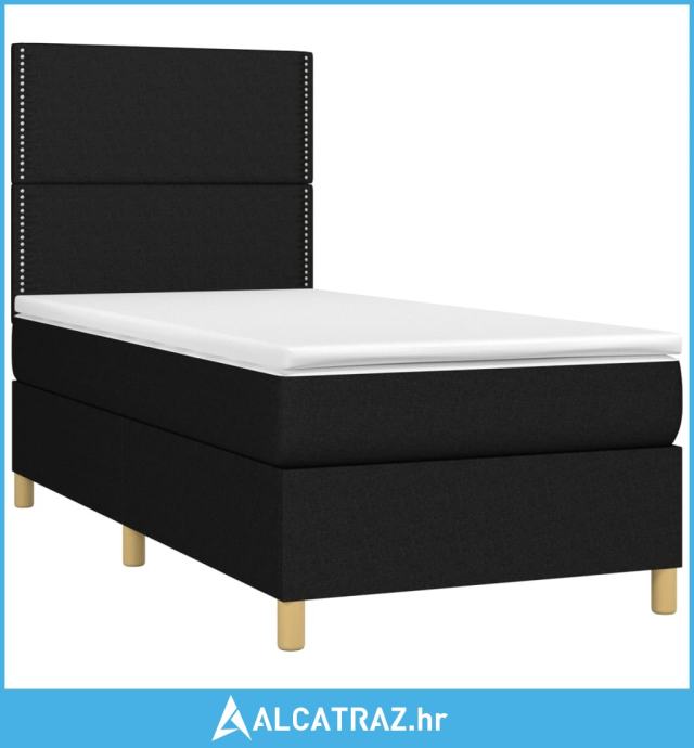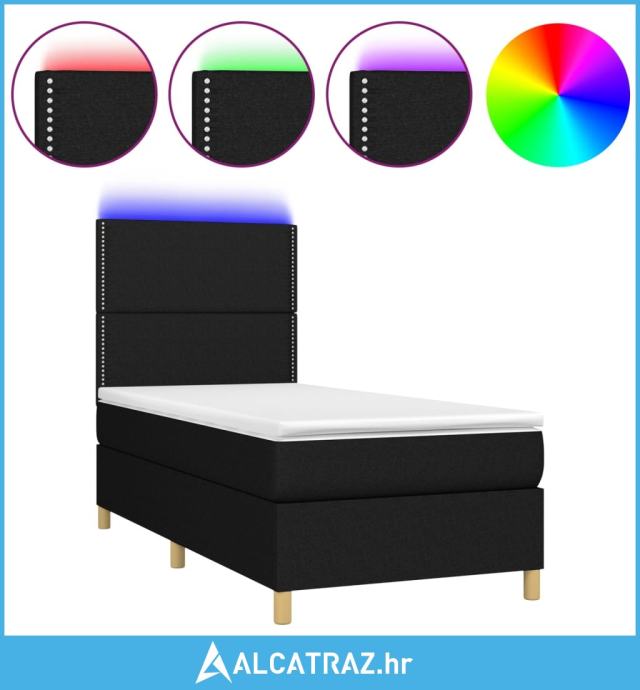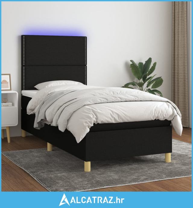 Krevet box spring s madracem LED crni 90x200 cm od tkanine - NOVO