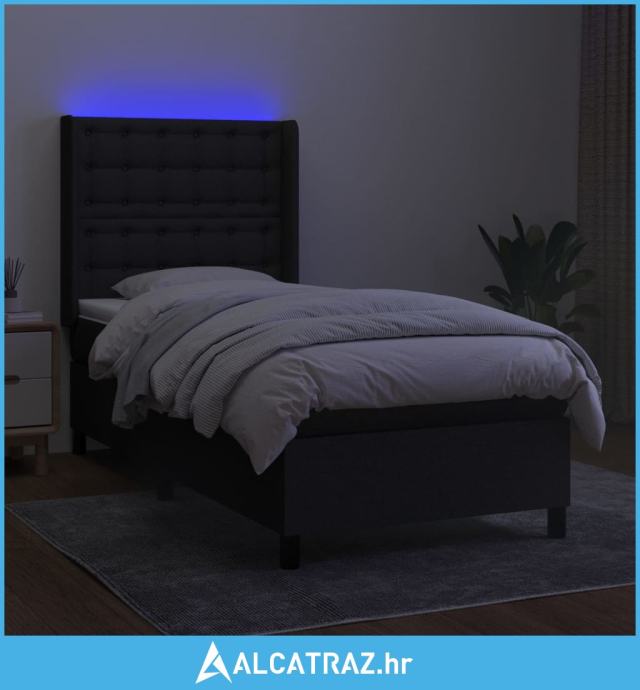 Krevet box spring s madracem LED crni 90x200 cm od tkanine - NOVO