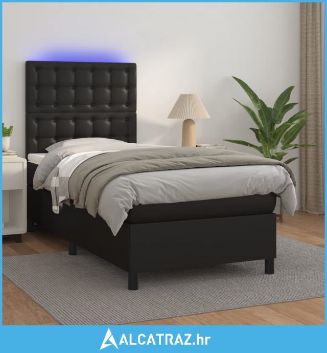 Krevet box spring s madracem LED crni 90x200 cm od umjetne kože - NOVO
