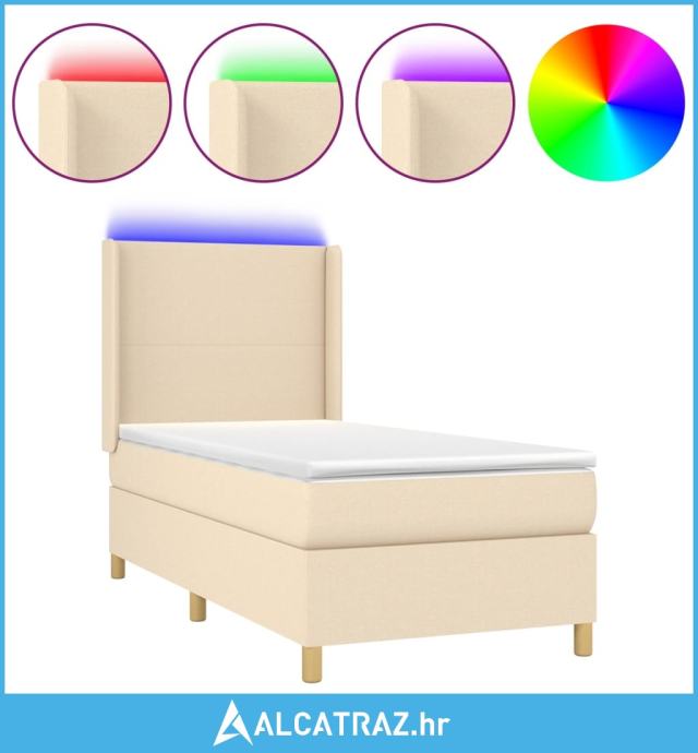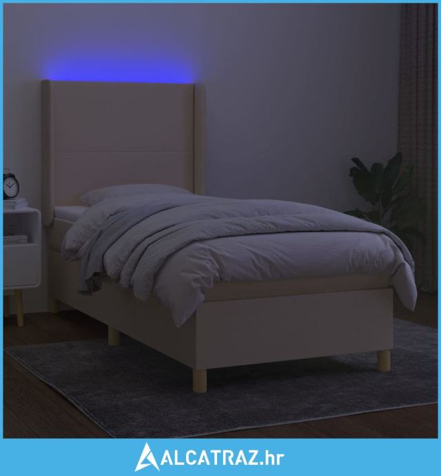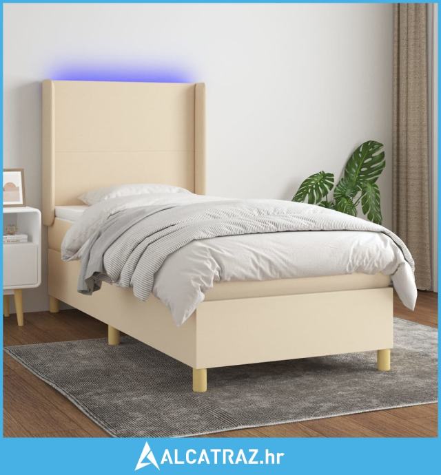 Krevet box spring s madracem LED krem 100x200 cm od tkanine - NOVO