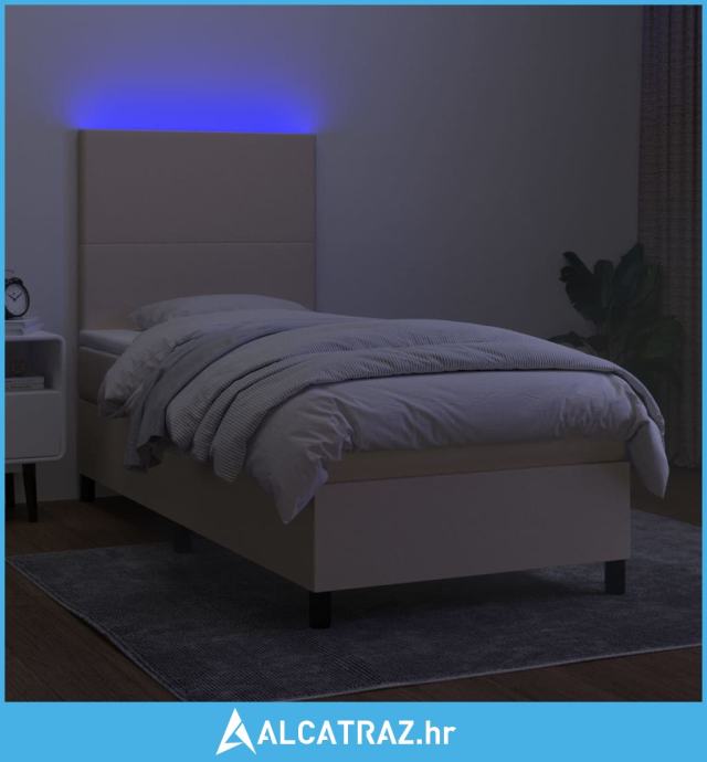 Krevet box spring s madracem LED krem 100x200 cm od tkanine - NOVO