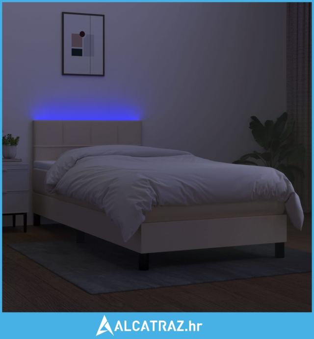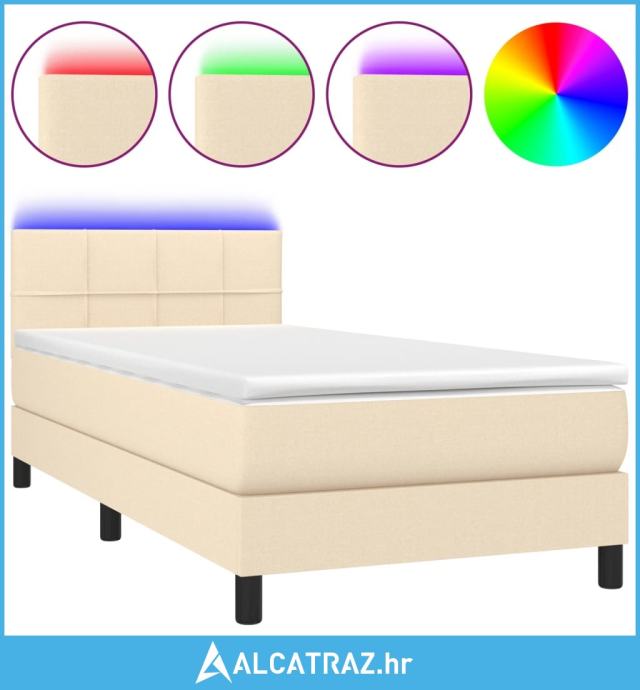 Krevet box spring s madracem LED krem 100x200 cm od tkanine - NOVO