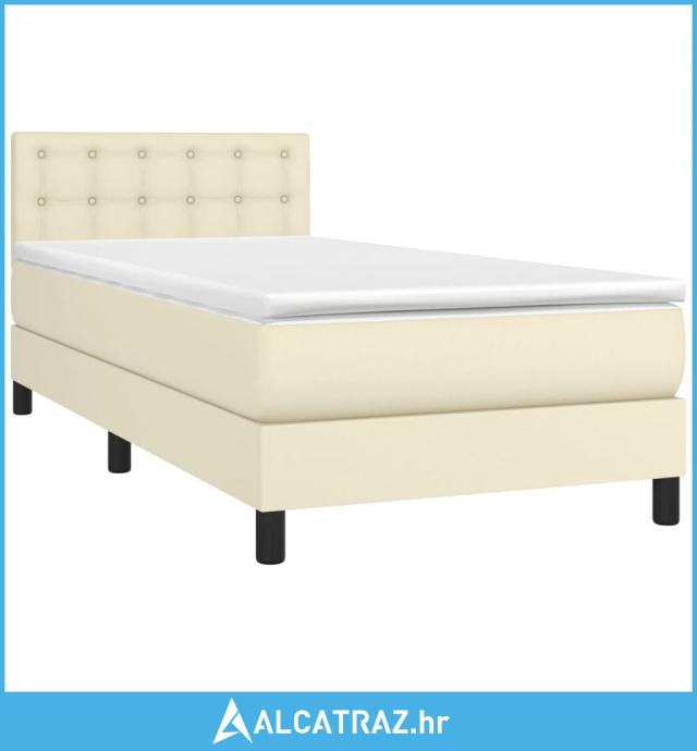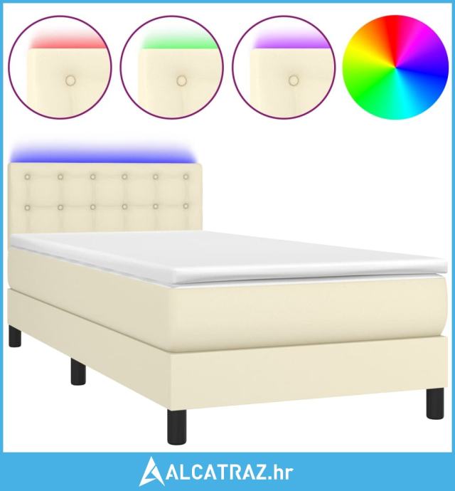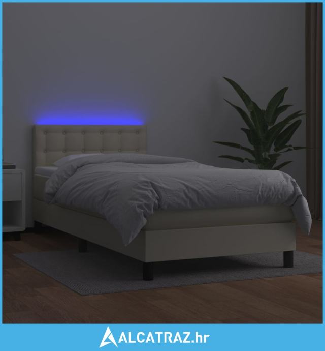 Krevet box spring s madracem LED krem 100x200cm od umjetne kože - NOVO