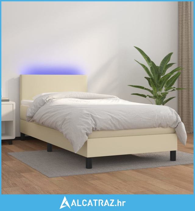 Krevet box spring s madracem LED krem 100x200cm od umjetne kože - NOVO