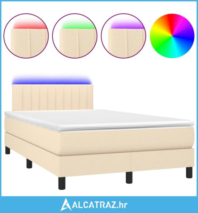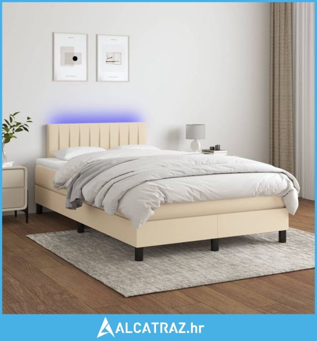 Krevet box spring s madracem LED krem 120 x 200 cm od tkanine - NOVO