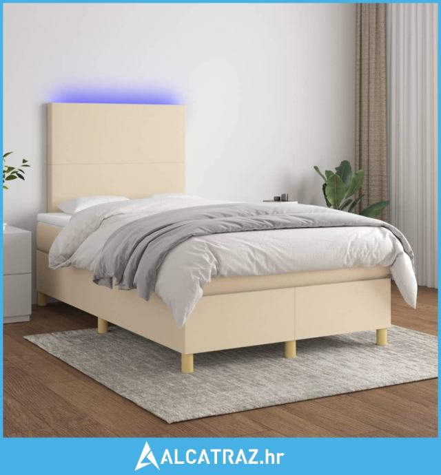 Krevet box spring s madracem LED krem 120 x 200 cm od tkanine - NOVO