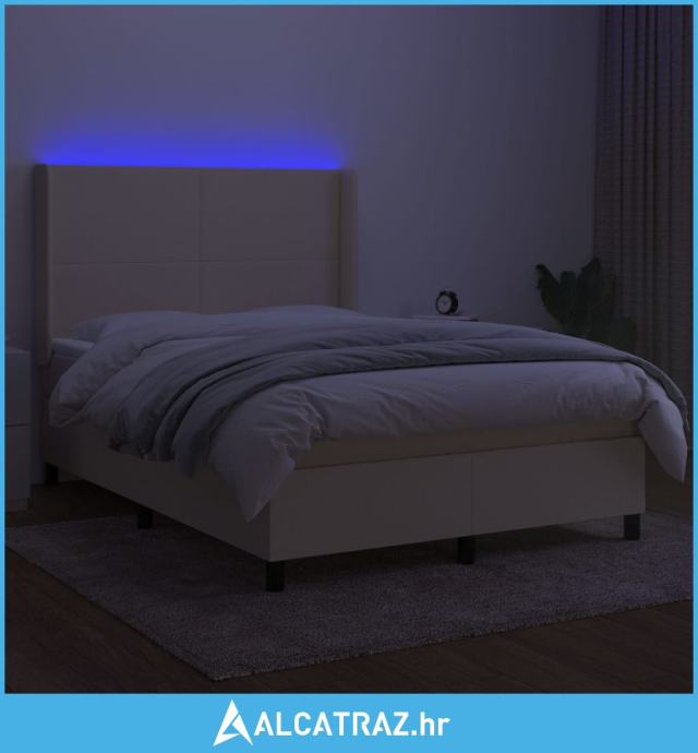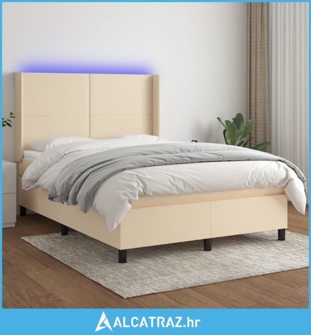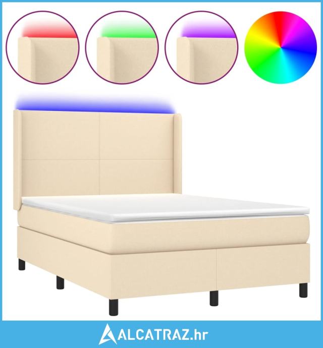 Krevet box spring s madracem LED krem 140x190 cm od tkanine - NOVO
