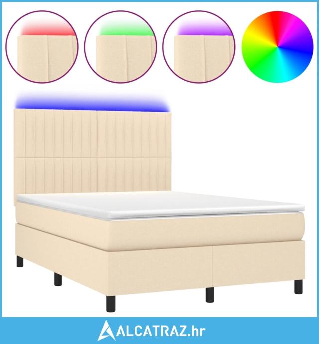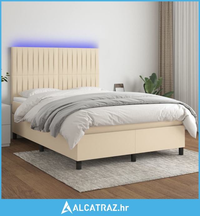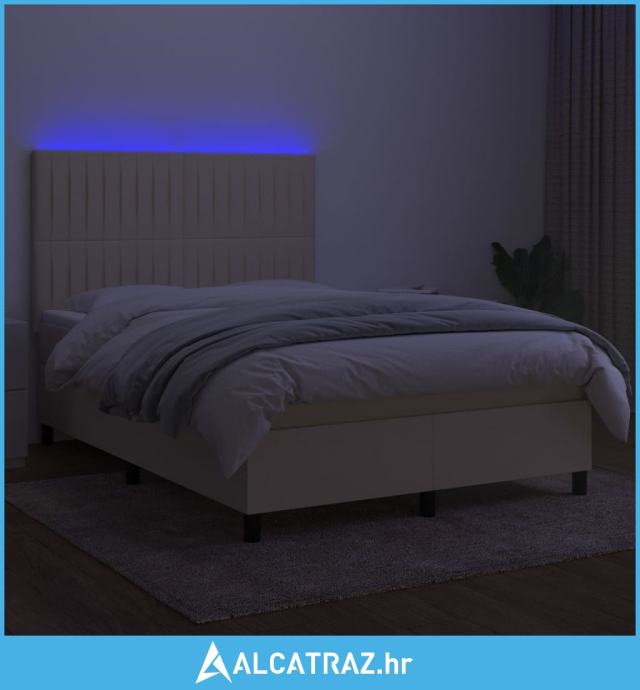 Krevet box spring s madracem LED krem 140x200 cm od tkanine - NOVO