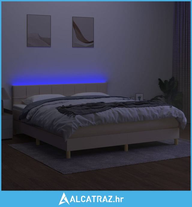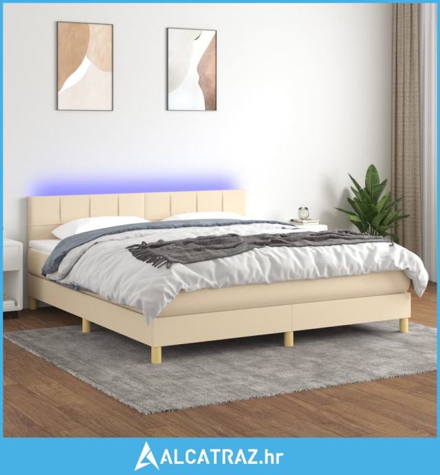 Krevet box spring s madracem LED krem 160x200 cm od tkanine - NOVO