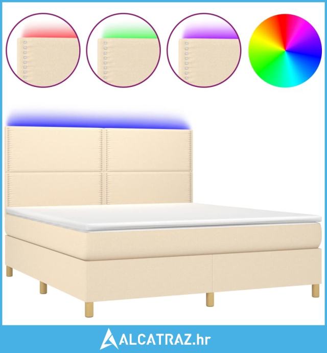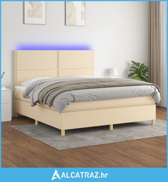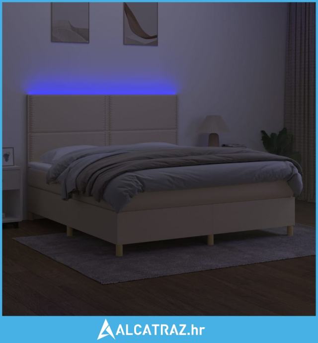 Krevet box spring s madracem LED krem 180x200 cm od tkanine - NOVO