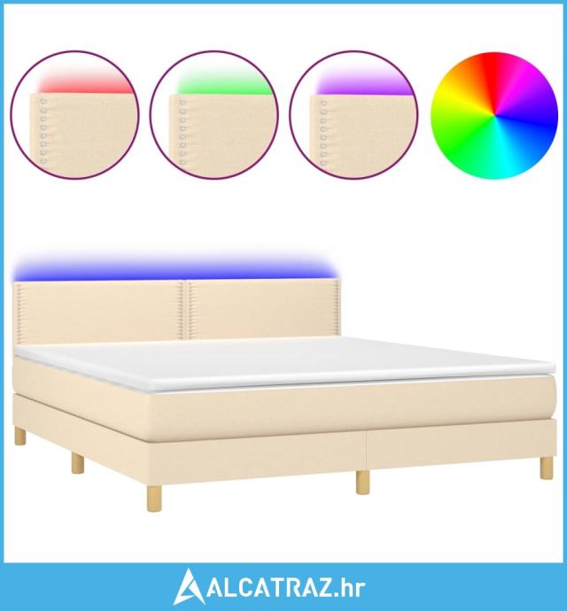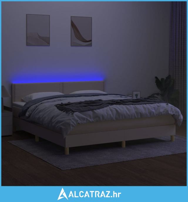 Krevet box spring s madracem LED krem 180x200 cm od tkanine - NOVO