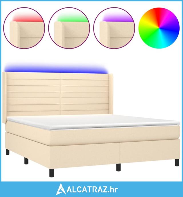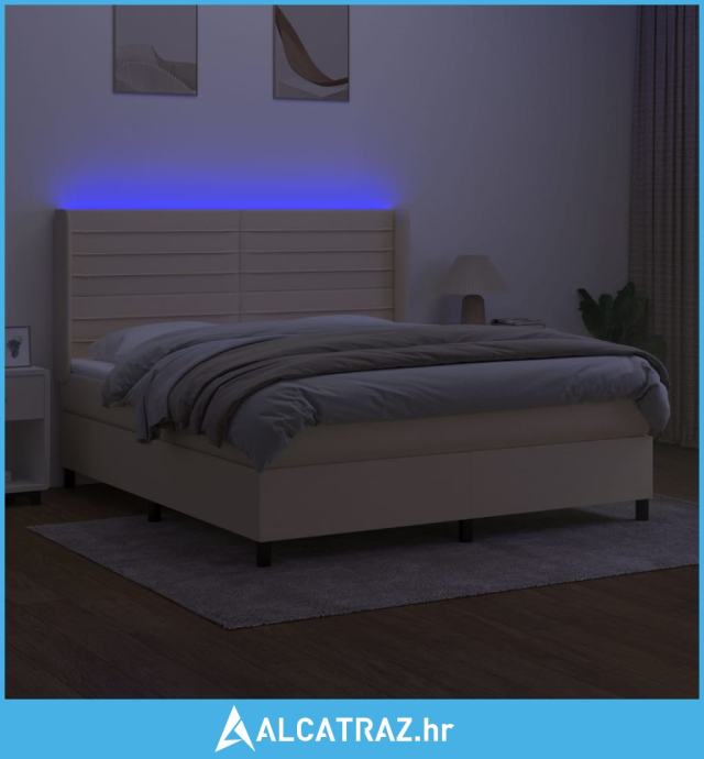 Krevet box spring s madracem LED krem 180x200 cm od tkanine - NOVO