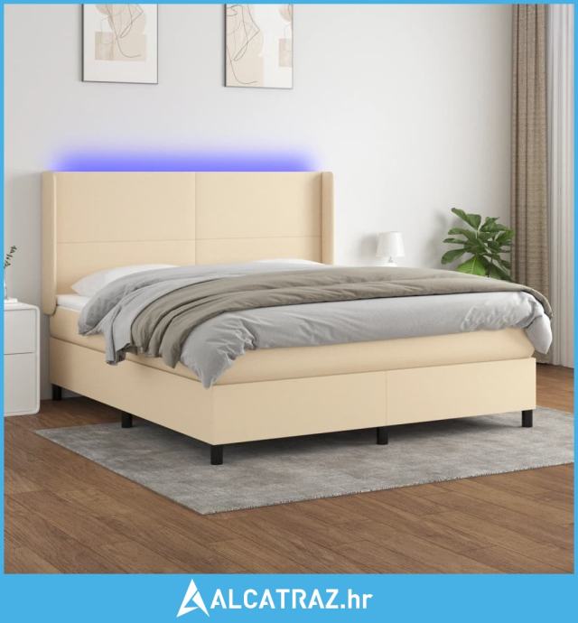 Krevet box spring s madracem LED krem 180x200 cm od tkanine - NOVO