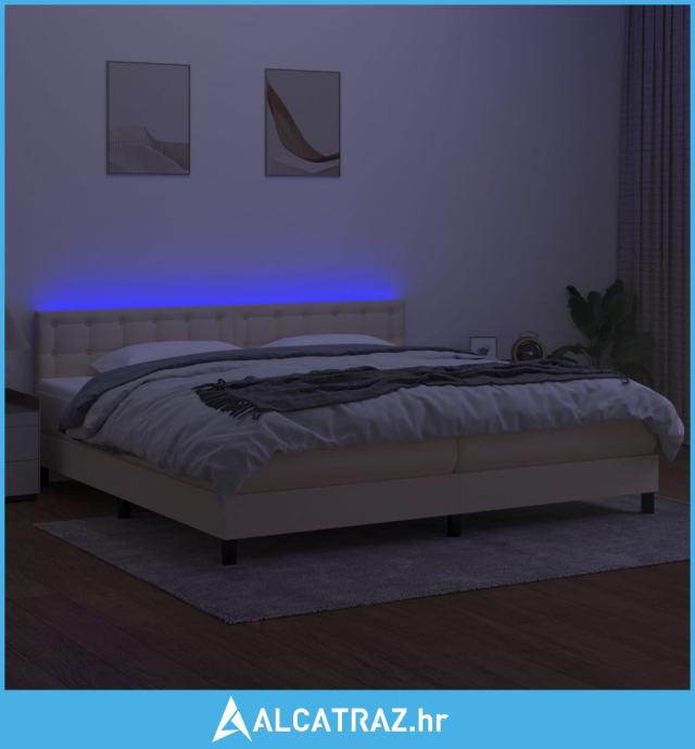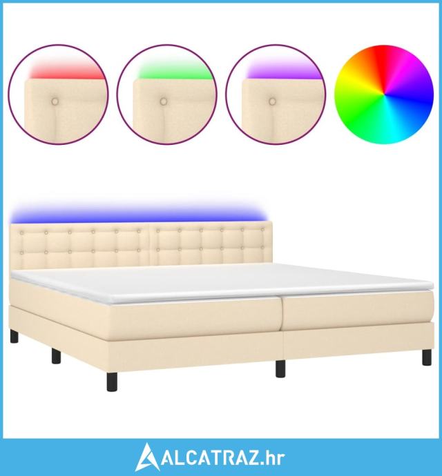 Krevet box spring s madracem LED krem 200x200 cm od tkanine - NOVO