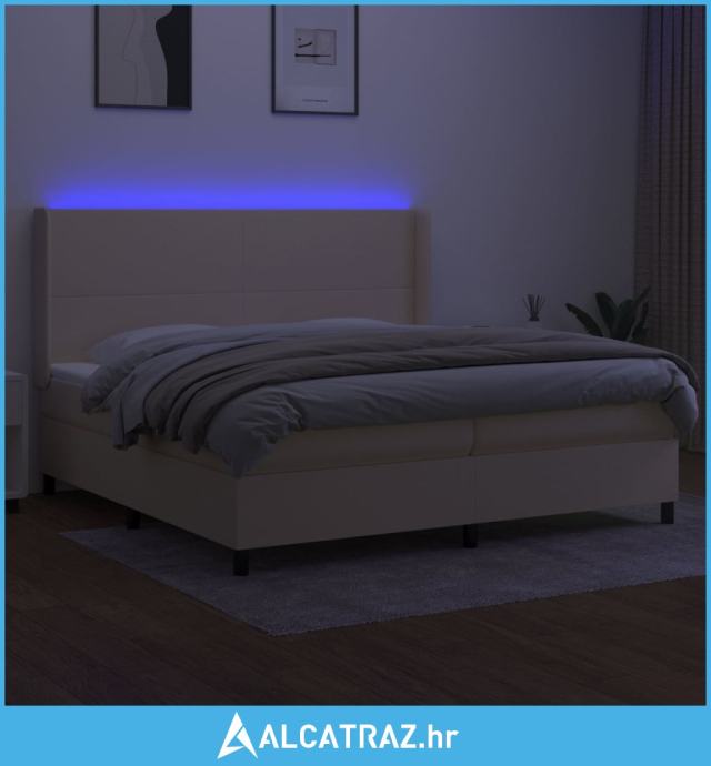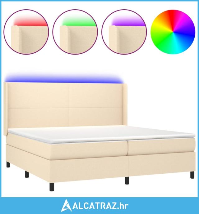 Krevet box spring s madracem LED krem 200x200 cm od tkanine - NOVO
