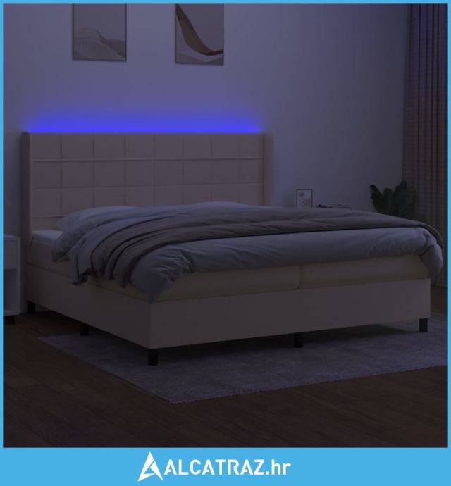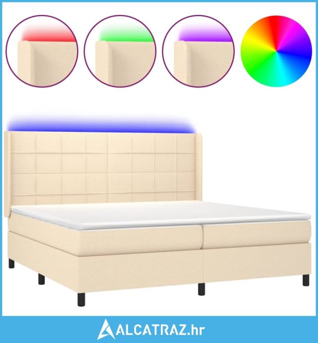 Krevet box spring s madracem LED krem 200x200 cm od tkanine - NOVO