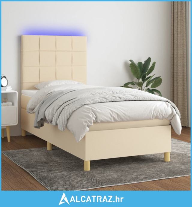 Krevet box spring s madracem LED krem 80 x 200 cm od tkanine - NOVO