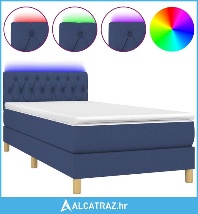 Krevet box spring s madracem LED plavi 100x200 cm od tkanine - NOVO