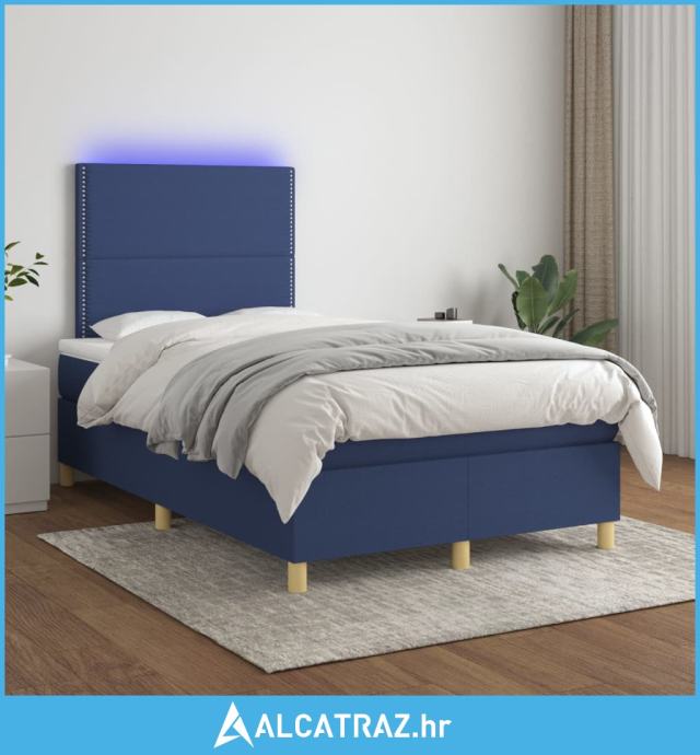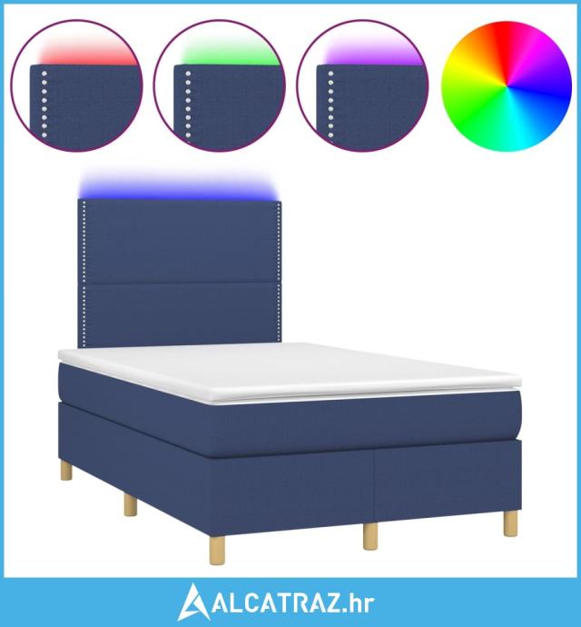 Krevet box spring s madracem LED plavi 120 x 200 cm od tkanine - NOVO