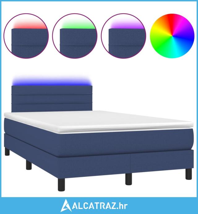 Krevet box spring s madracem LED plavi 120 x 200 cm od tkanine - NOVO